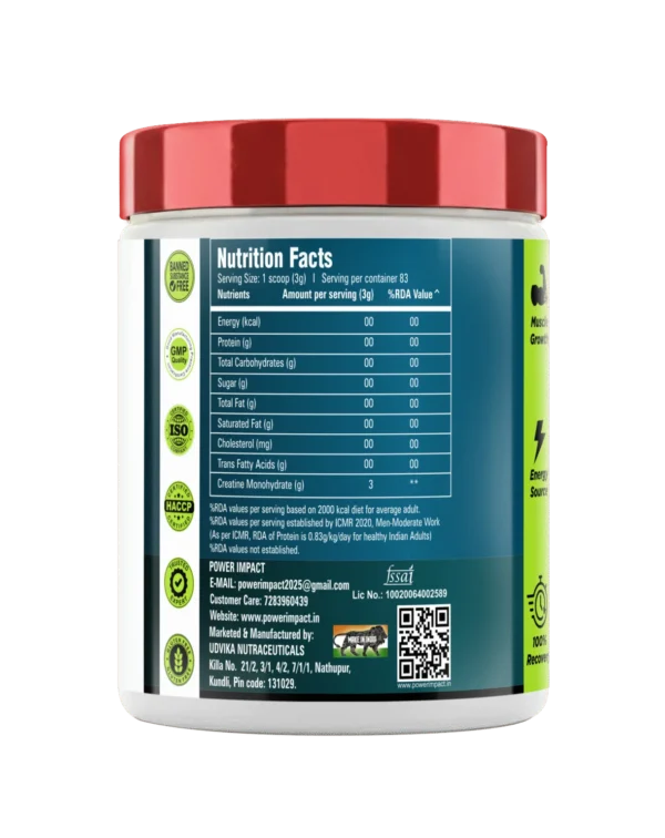 Power Impact Creatine Monohydrate Advance+ is a high-purity, fast-absorbing creatine formula designed to boost strength, power, and lean muscle mass. Whether you’re lifting heavy, sprinting, or training intensely, this advanced creatine blend delivers the explosive performance your muscles need.
